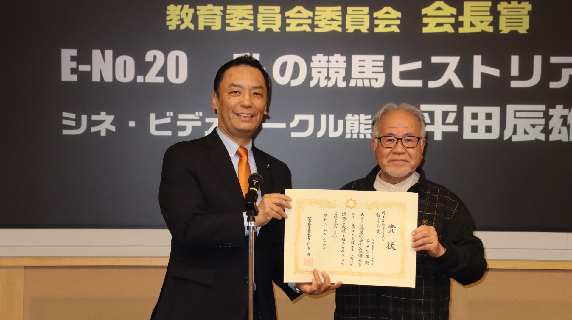埼玉県教育委員会 教育長賞 E-No.20 私の競馬ヒストリア シネ・ビデオサークル熊谷 平田辰雄(41ポイント)